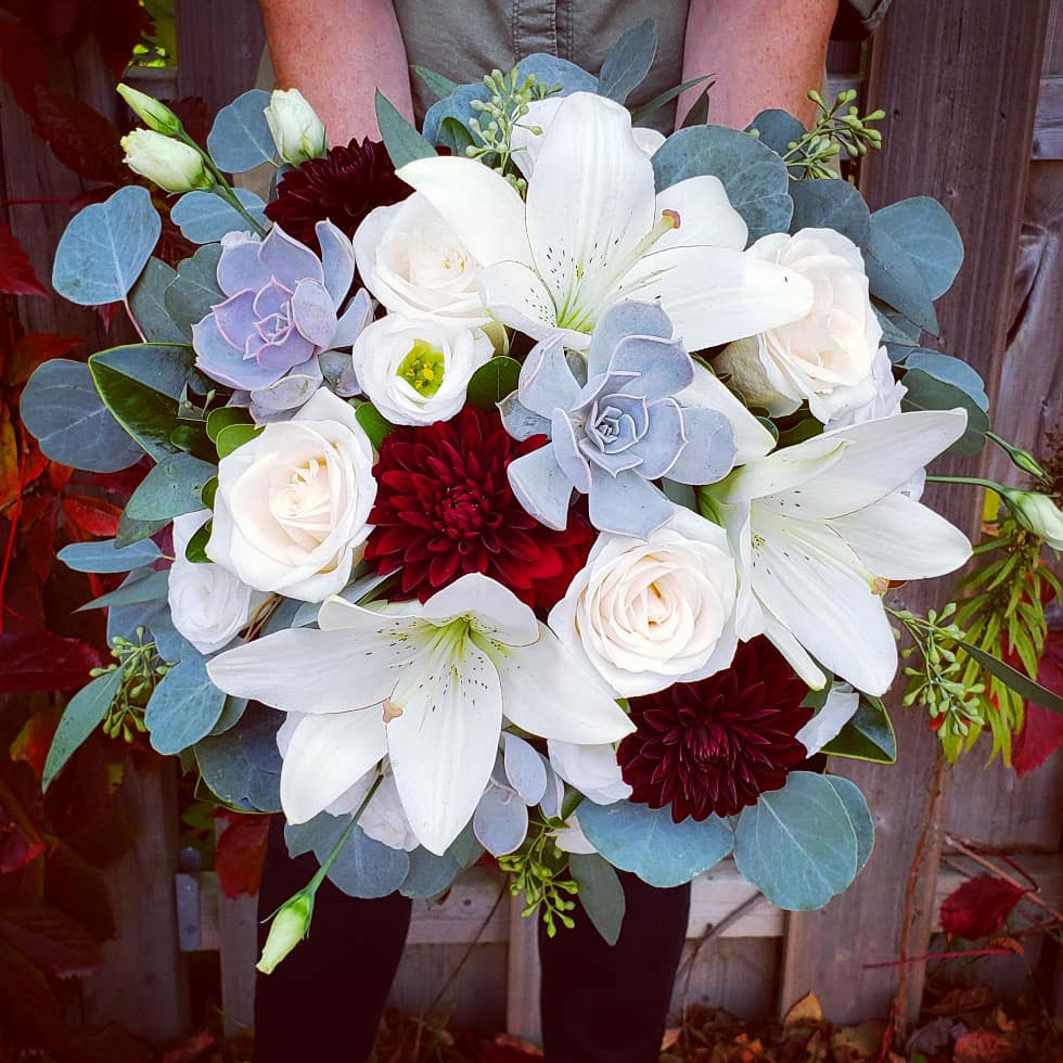 We service Huntsville, and Muskoka for weddings of all sizes, whether it's an intimate ceremony or a large event.  We can provide full service, delivery and set up, or you can have a simple drop off of your flowers on the day.
