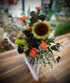 This one celebrates all that is creepy, with oranges and browns and black along with some webs and Jack o’lanterns.